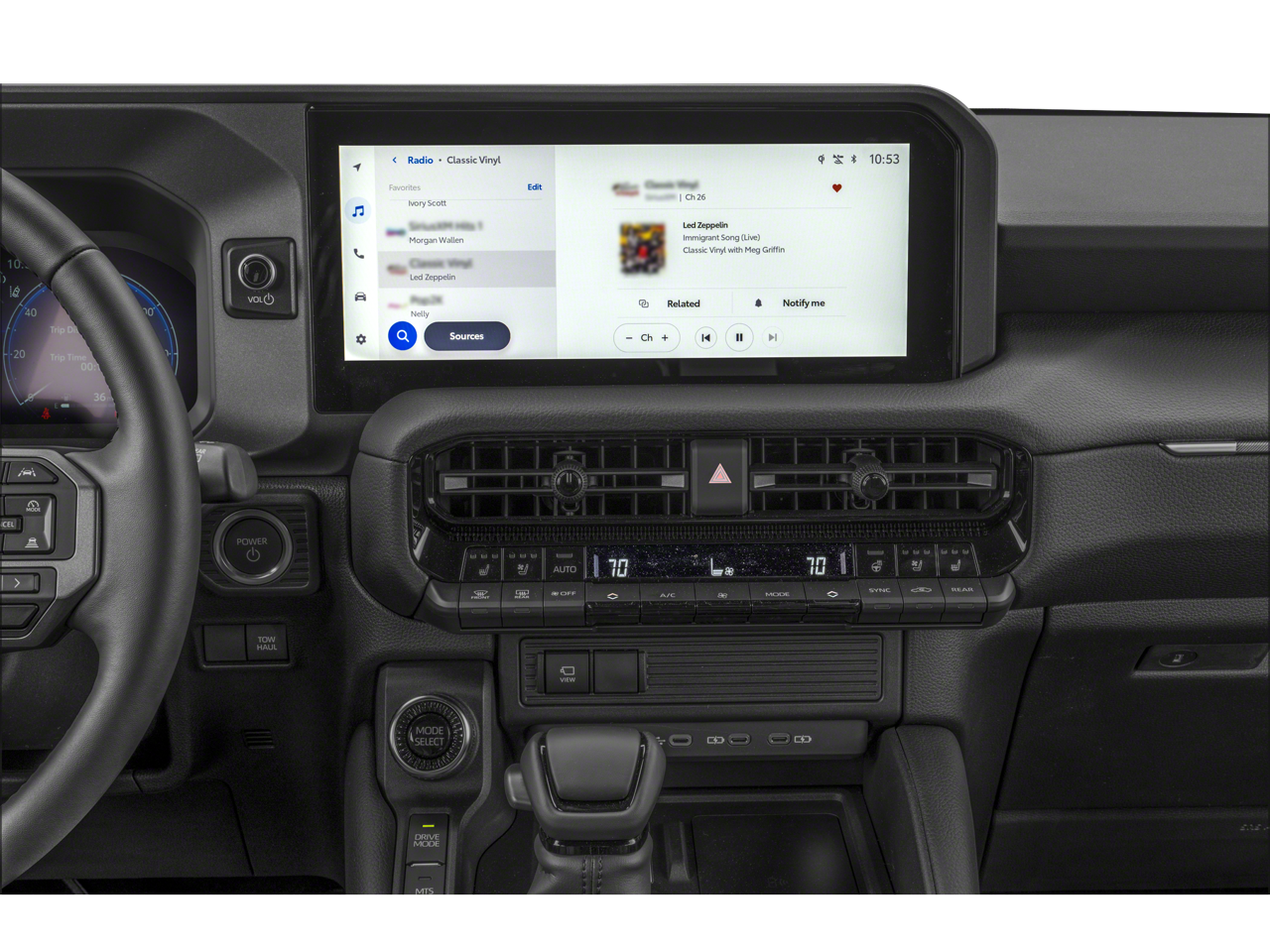 • 12.3-in. Toyota Audio Multimedia touchscreen with 10-speaker audio system, wireless Android Autoâ„¢ 5 & Apple CarPlay® 11 compatibility, SiriusXM® 52 3-month trial subscription. See toyota.com/connected-services for details.