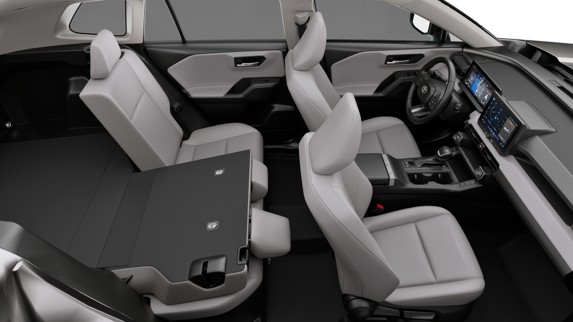 • Center console with covered storage compartment, reversible armrest/console tray, two cup holders, drive mode, EV mode, auto LSD/VSC, Electric Parking Brake (EPB) 8 and automatic Brake Hold 11 controls, and front storage tray