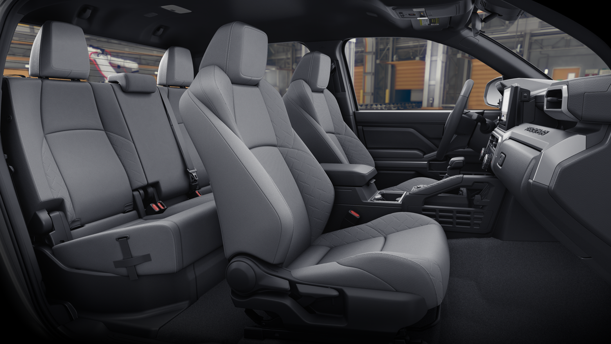 • Fabric-trimmed seats; 6-way manually adjustable driver and front passenger seats with 2-way power-adjustable lumbar support on driver's seat only